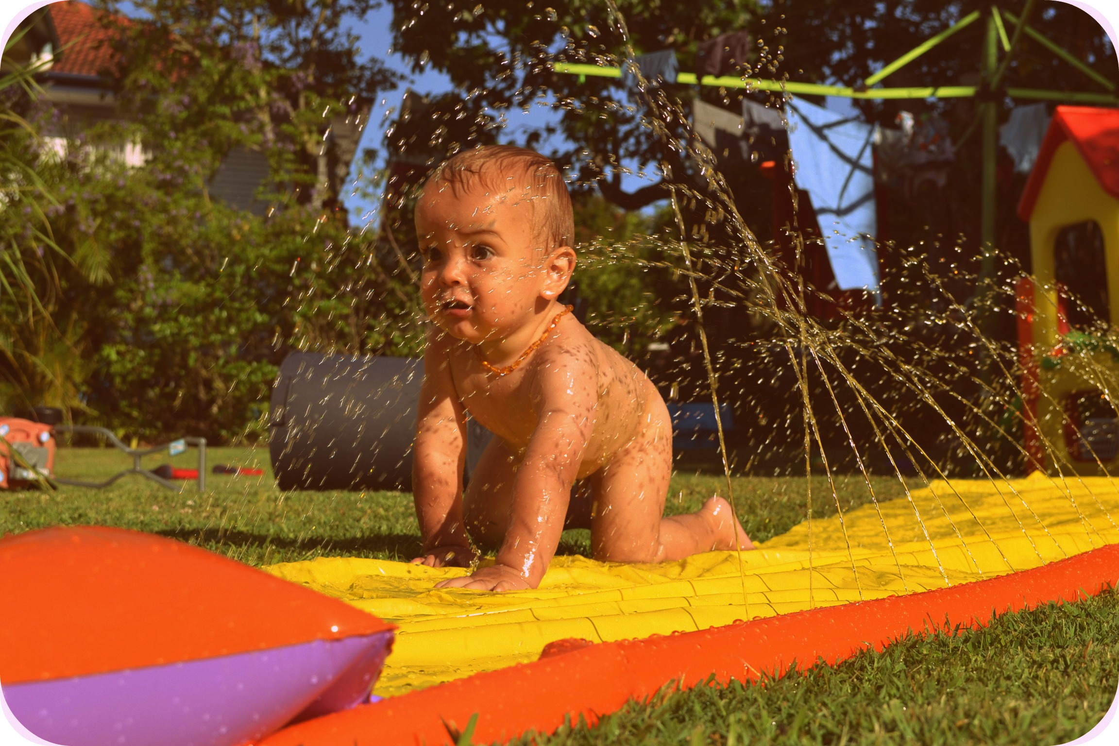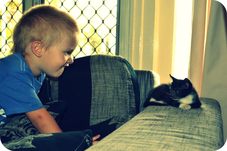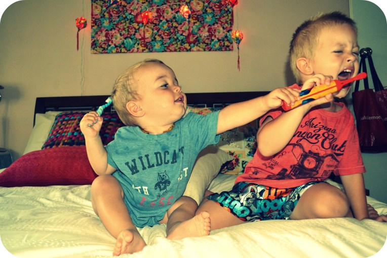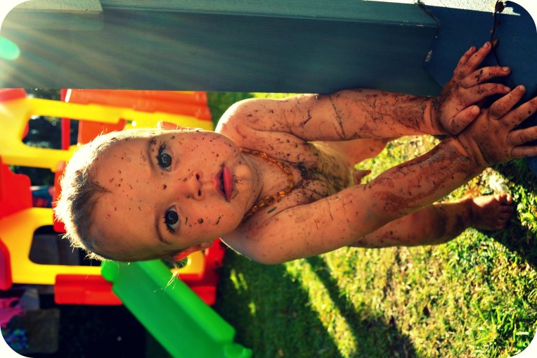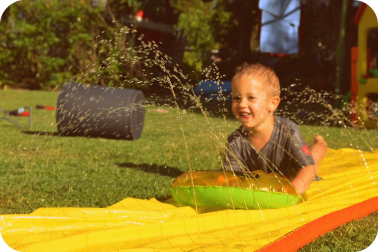 Deski it’s just cheek! Honestly you’re a little crazy kid! You make your mum and dad laugh every second… whether you’re shaking your head insanely from side to side, bopping to music only you can hear, being a little cranky pants to get your big brother in trouble, playing mum and dad off against each other, crawling away from us at a speed which astounds us, refusing to come inside at dinner time, wanting food right NOW, laughing hysterically when we say goodnight through your mozzie net, squealing with delight everytime you’re within reach of water, holding up your own body weight on anything you can hang off…, climbing everything and anything you can get a toe on, being a CP when you’re teething, but still smiling at anyone and anything that looks at you!
