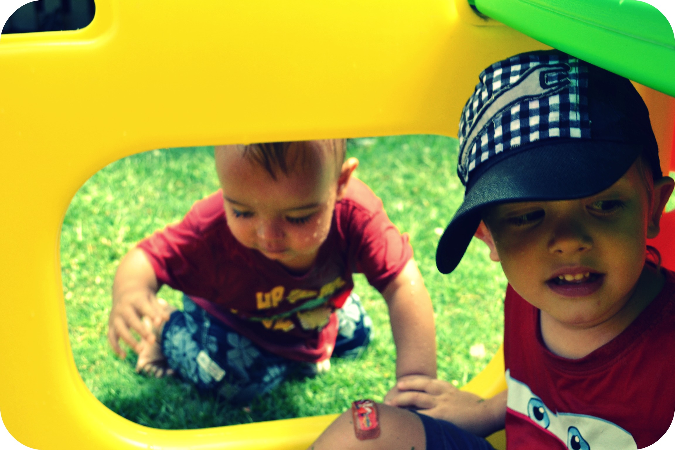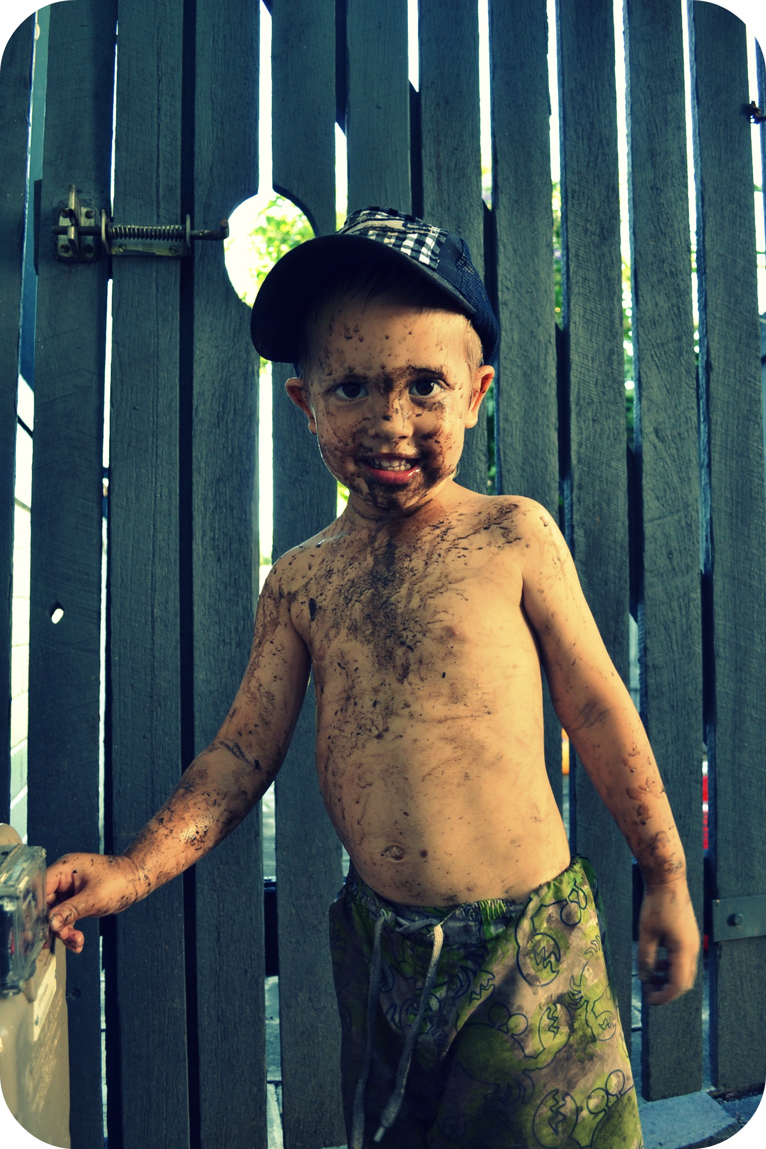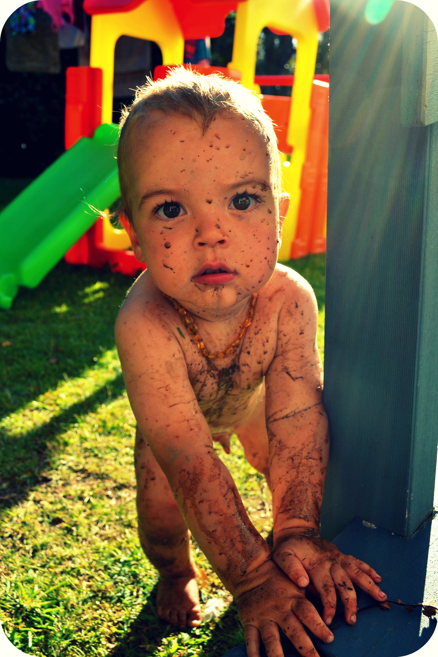 Deski it’s just cheek! Honestly you’re a little crazy kid! You make your mum and dad laugh every second… whether you’re shaking your head insanely from side to side, bopping to music only you can hear, being a little cranky pants to get your big brother in trouble, playing mum and dad off against each other, crawling away from us at a speed which astounds us, refusing to come inside at dinner time, wanting food right NOW, laughing hysterically when we say goodnight through your mozzie net, squealing with delight everytime you’re within reach of water, holding up your own body weight on anything you can hang off…, climbing everything and anything you can get a toe on, being a CP when you’re teething, but still smiling at anyone and anything that looks at you!